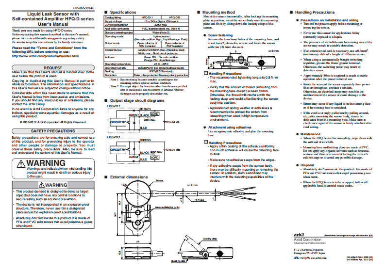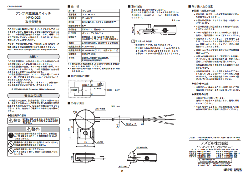 [文件编号] CP-UM-5405JE[型号]HPQ-D23 /HPQ-D23 /PDF / 760.72 KB日语, 英语 -