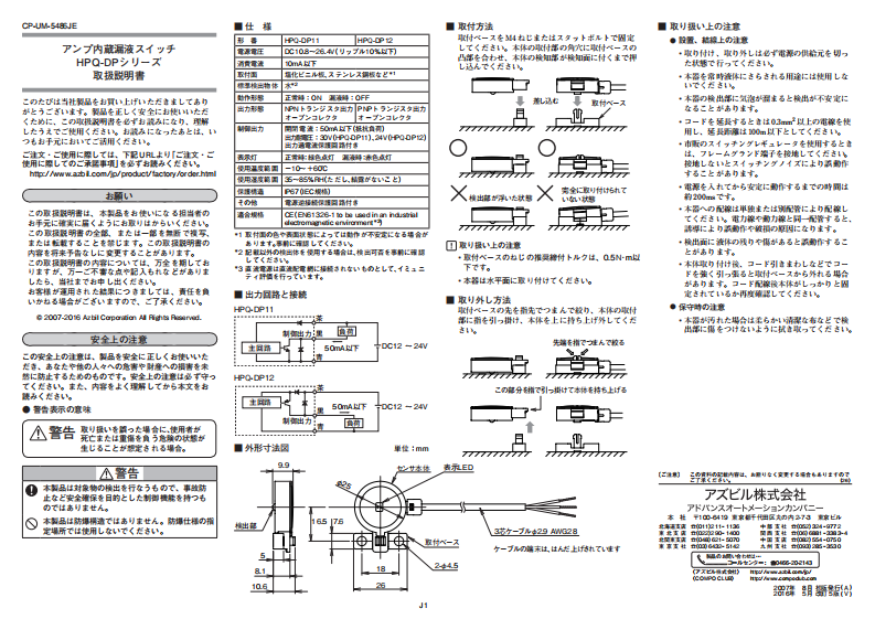 [文件编号] CP-UM-5486JE[型号]HPQ-DP□□ /HPQ-DP□□ /PDF / 393.46 KB日语, 英语