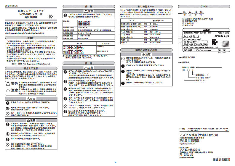 [文件编号] CP-UM-5602JK[型号]VCX-7□0□ /VCX-7□0□ /PDF / 3.29 MB日语 -