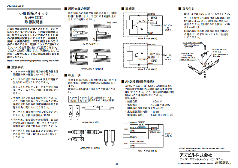 [文件编号] CP-UM-3162JE[型号]APM-□□□□ /APM-□□□□ /PDF / 764.43 KB日语, 英语
