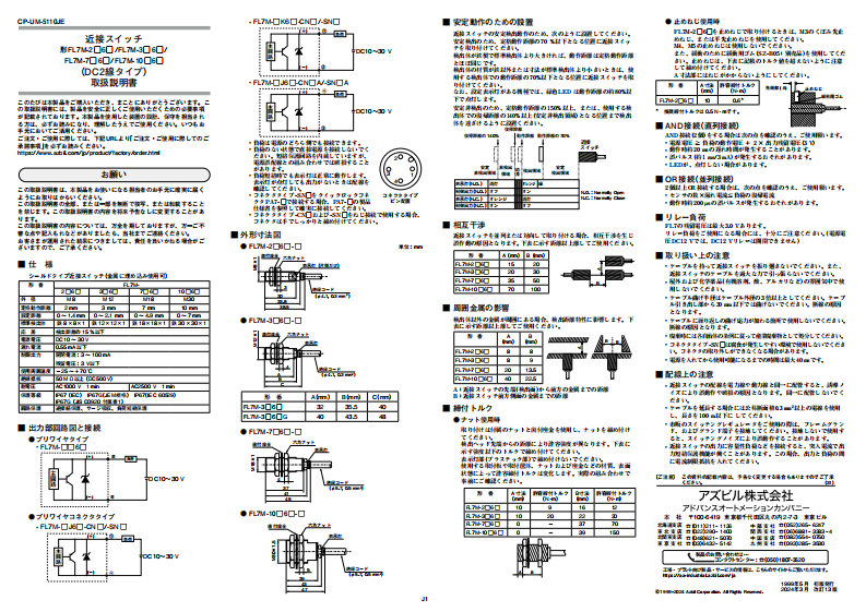 [文件编号] CP-UM-3076JE[型号]FL7M-□□□A /FL7M-□□□A /PDF / 349.58 KB日语, 英语 -