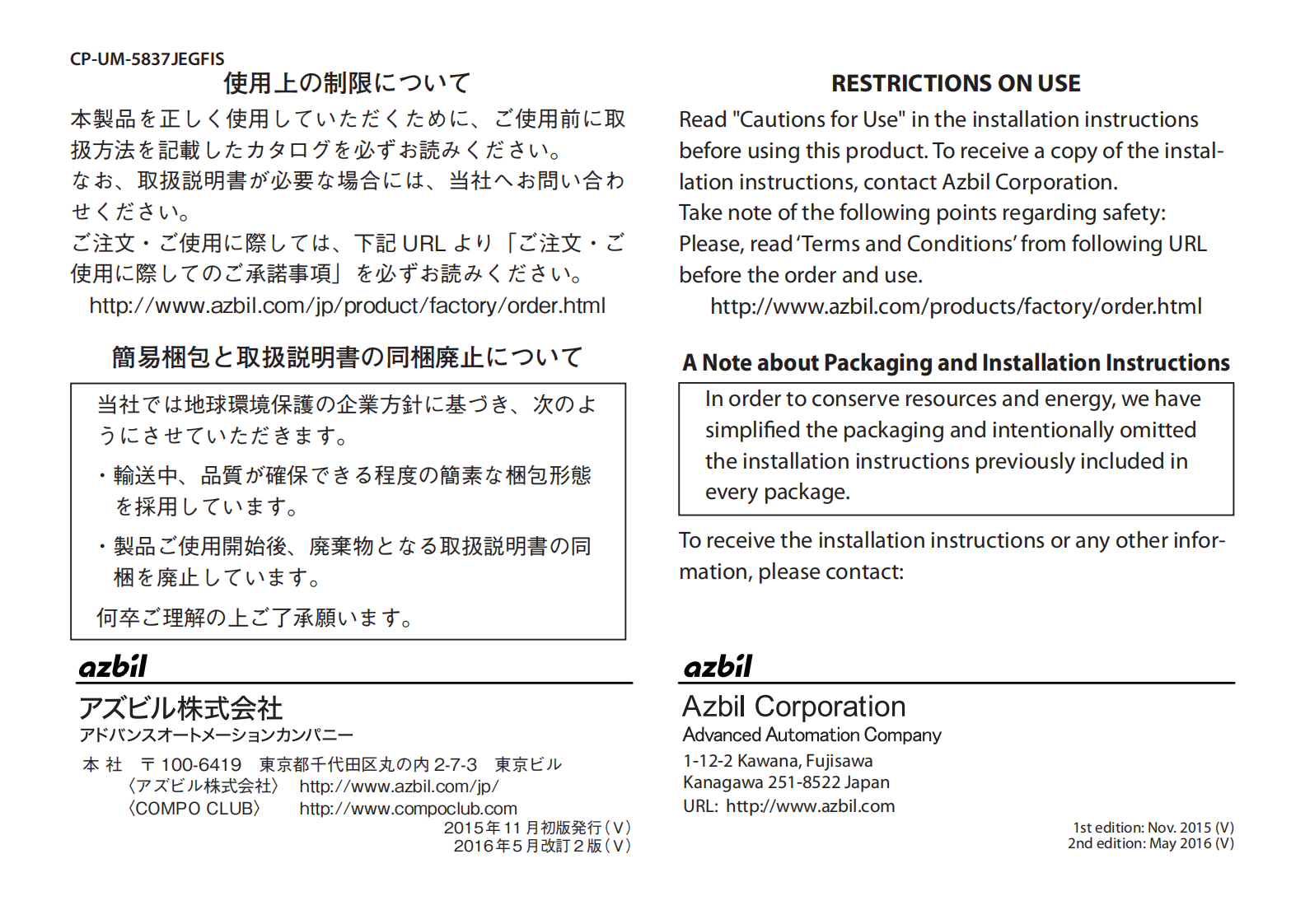 [文件编号] CP-UM-5837JEGFIS[型号]FL7S-□□□□ /FL7S-□□□□ /PDF / 207.10 KB日语, 英语